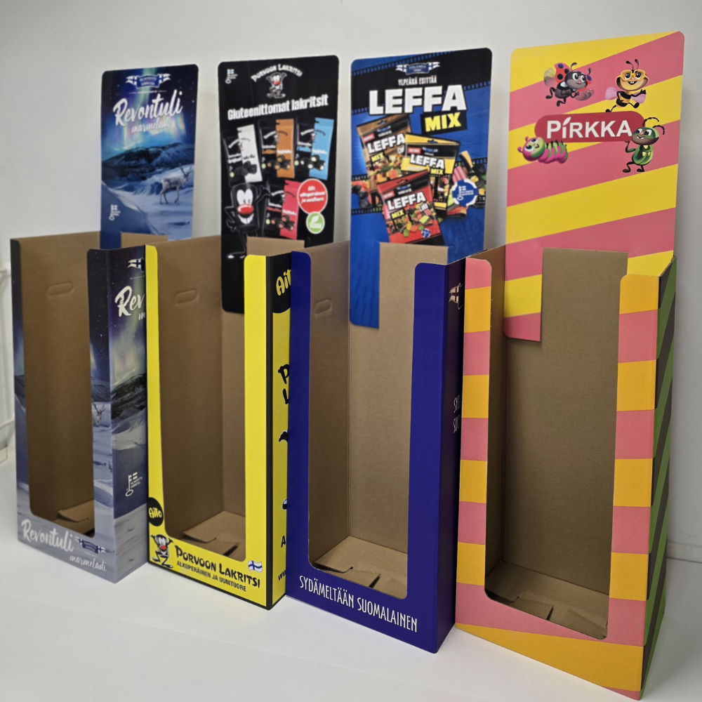 Me ER-Pakkauksella valmistamme aaltopahvipakkauksia, jotka eivät ainoastaan suojaa tuotettasi, vaan myös nostavat sen esille myyntipisteessä. Kaseerauksen avulla voimme yhdistää aaltopahvin mekaanisen kestävyyden korkealaatuiseen, valokuvatasoiseen painojälkeen – ilman kompromisseja.
